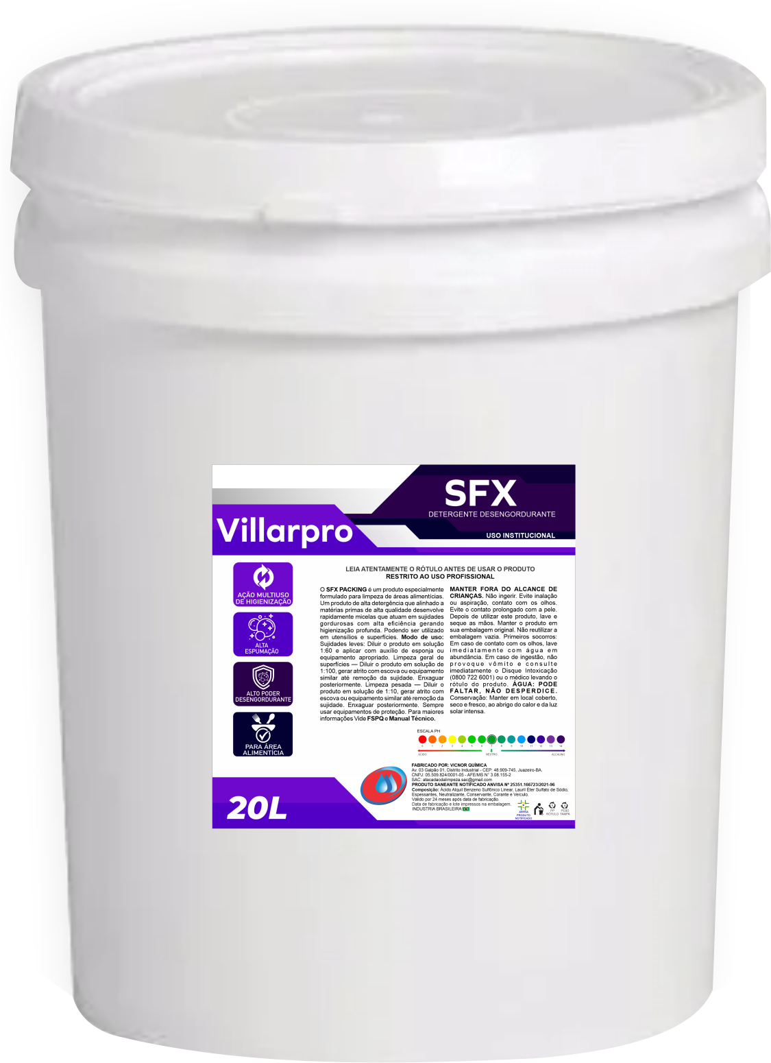 O SFX é um produto especialmente formulado para limpeza de áreas alimentícias. Um produto de alta detergência que